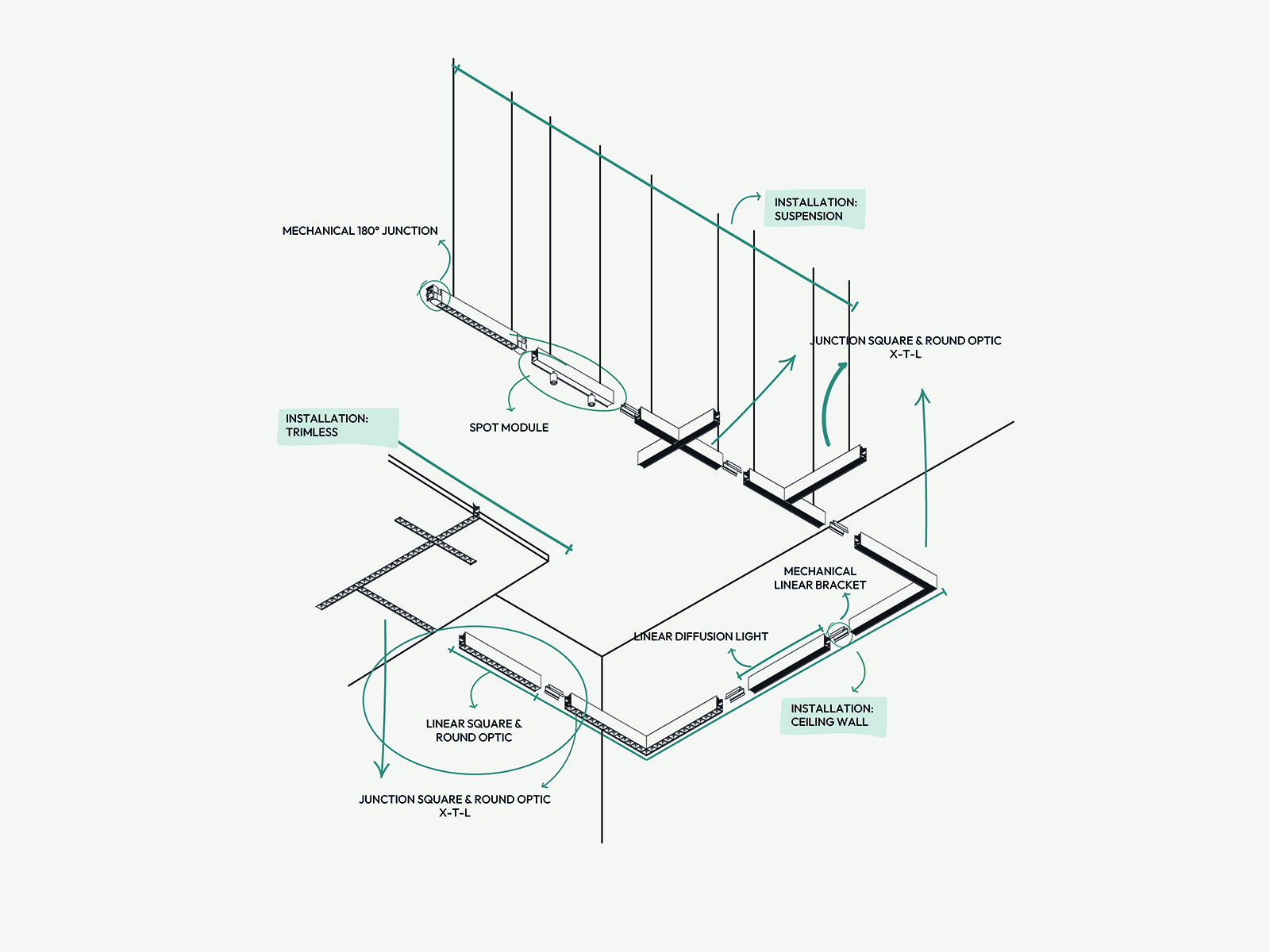 Le module d'éclairage linéaire Link conçu par Elcom Ivela est un produit d'éclairage adapté aux bureaux et aux lieux publics. L'objectif est d'offrir un produit aux proportions esthétiques et aux performances d'éclairage adéquates. Un soin particulier a été apporté au développement afin de faciliter l'installation et l'entretien.