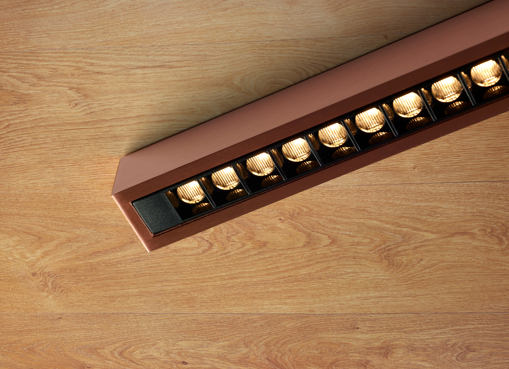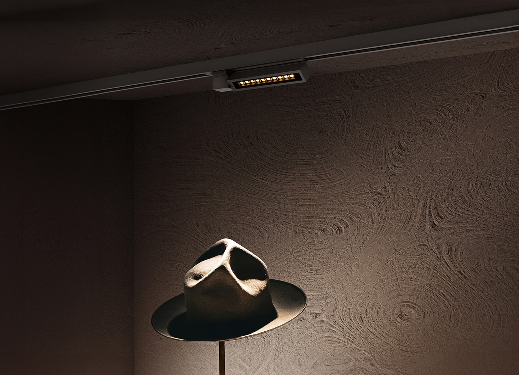 Un lingotto di pura luce dove la personalizzazione della finitura estetica lo rende all’occorrenza minimale o protagonista negli spazi. Integrato mimeticamente nei soffitti o esaltato nelle sue caratteristiche di finiture materiche esclusive si pone come una nuova visione di sistema declinabile in alte performance illuminotecniche e di qualità visiva.