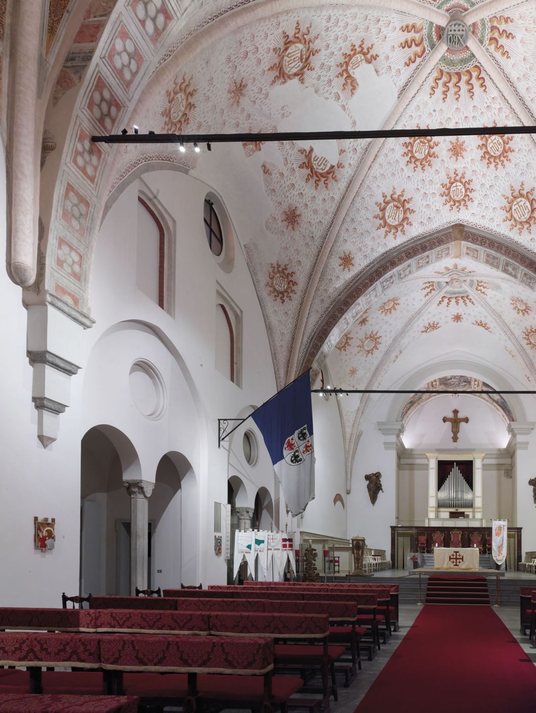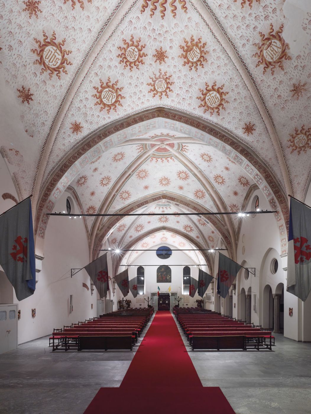 In questo contesto è stato installato il corpo illuminante Musa M-2 — un prodotto LED pensato per ambienti sacri, museali e retail. Compatto e discreto, è dotato di due sorgenti luminose orientabili e quattro ottiche differenti, garantendo la massima versatilità ed efficienza illuminotecnica.