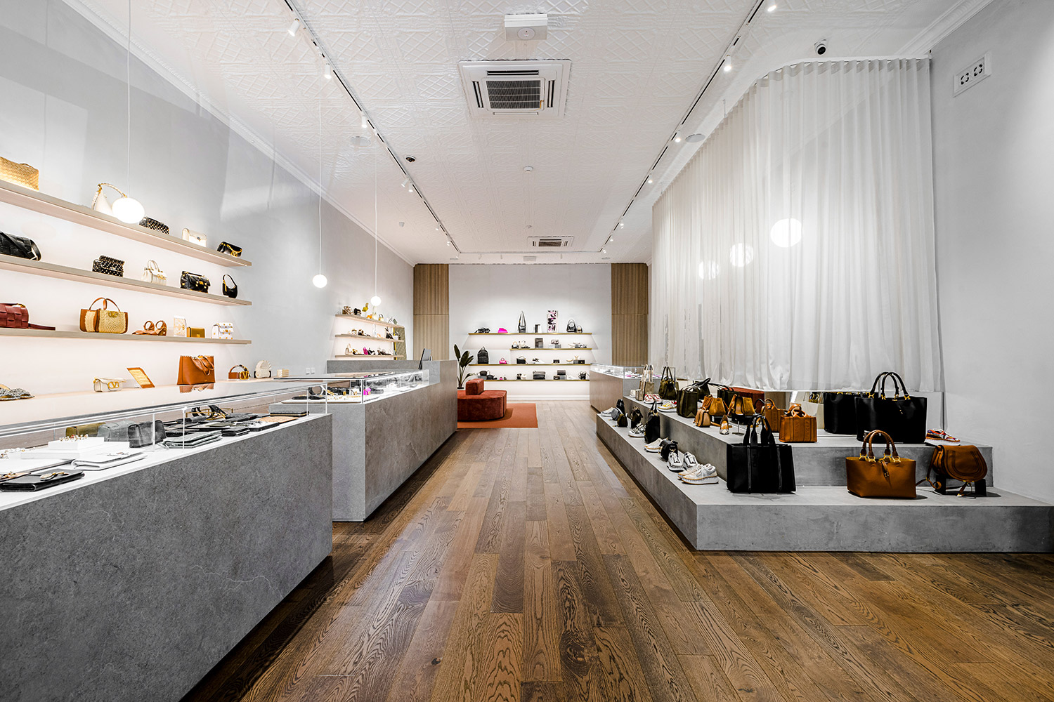Mata Design ha abilmente plasmato una boutique sontuosa e sofisticata sfruttando le dimensioni e l'orientamento preesistenti dello spazio. Il loro approccio fonde elementi raffinati con sottili sfumature, culminando in un'esperienza di shopping elegante e lussuosa.