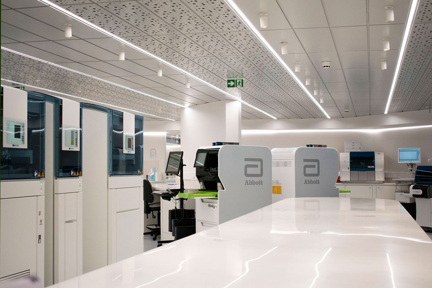 Il progetto illuminotecnico ha previsto la riqualificazione della zona analisi all'interno del laboratorio.