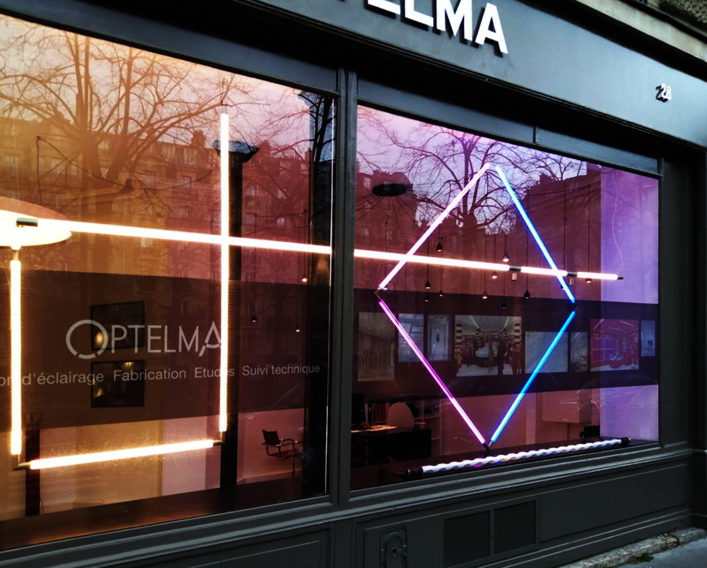 Questa installazione di 35, all’interno della vetrina di un negozio di illuminazione, vuole mettere in mostra tutte le potenzialità tecniche di entertaiment del prodotto, anche in uno spazio