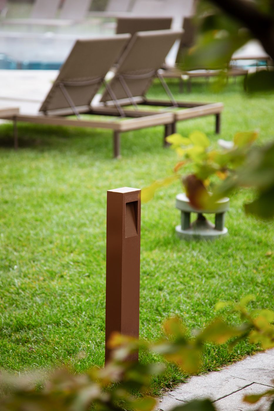Il progetto ha previsto l’inserimento di prodotti per esterno, in una scelta che ha promosso non solo la performance tecnica, ma anche l’estetica. I Pole-cut utilizzati, in questo caso in versione ruggine da 700mm, sono infatti apparecchi dalla forma geometrica ed elegante in grado di valorizzare i percorsi che tracciano grazie ad una luce morbida e discreta.