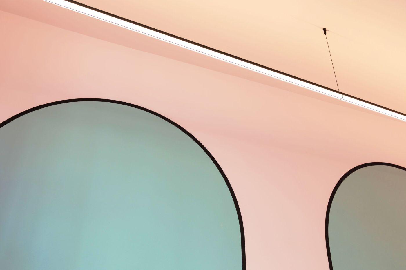 La versione custom del sistema lineare 35 si inserisce con naturalezza negli ambienti, sottolineandone le geometrie spaziali e facendo risaltare colori e dettagli.