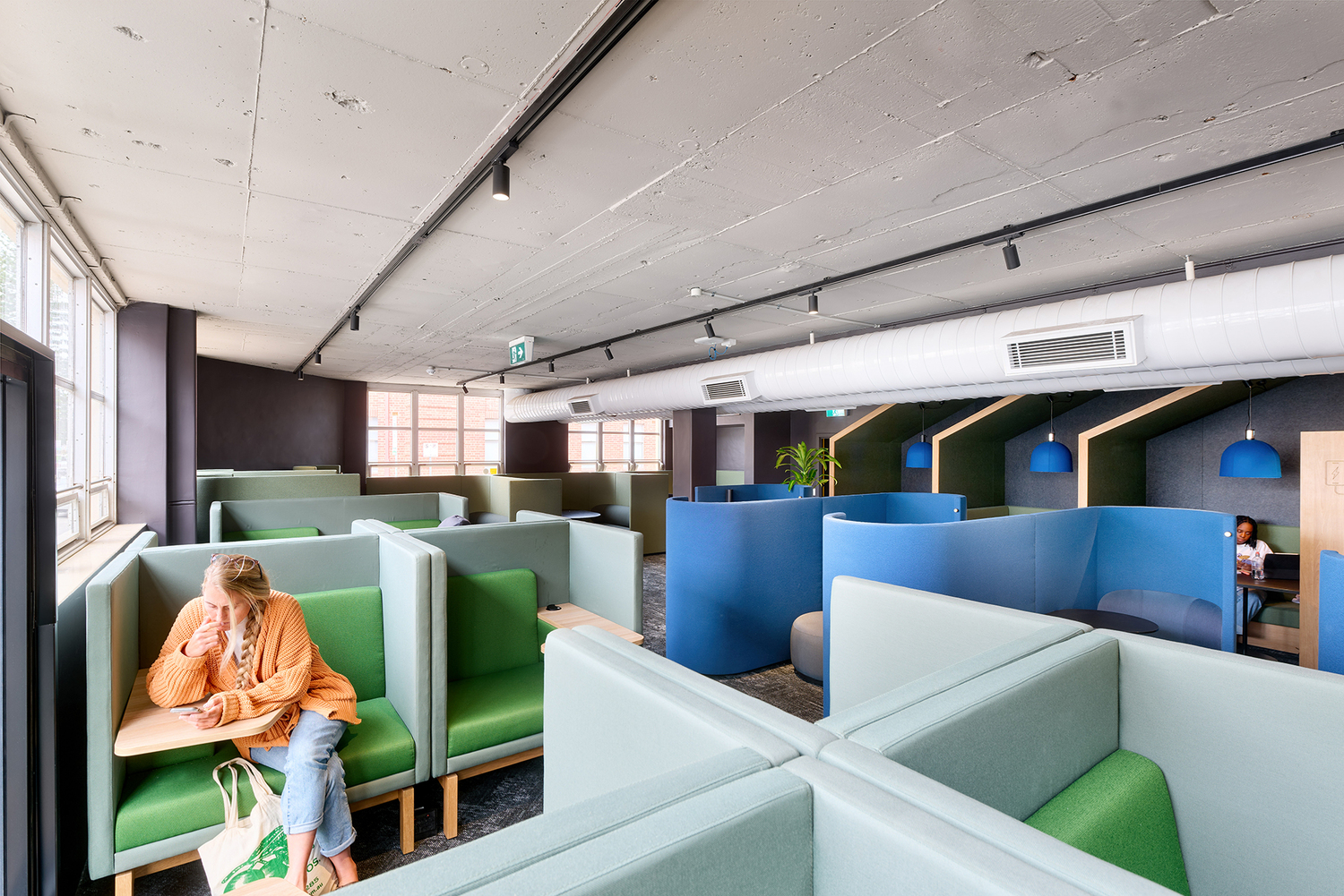 Gli interni di Prindiville Hall presentano un design moderno e contemporaneo, pur rendendo omaggio alle sue caratteristiche architettoniche con aree di mattoni a vista originali mantenuti intatti. Tocchi di colore, texture e forme sono stati inseriti nello spazio con arredi unici, dando vita a uno spazio dinamico e coinvolgente.